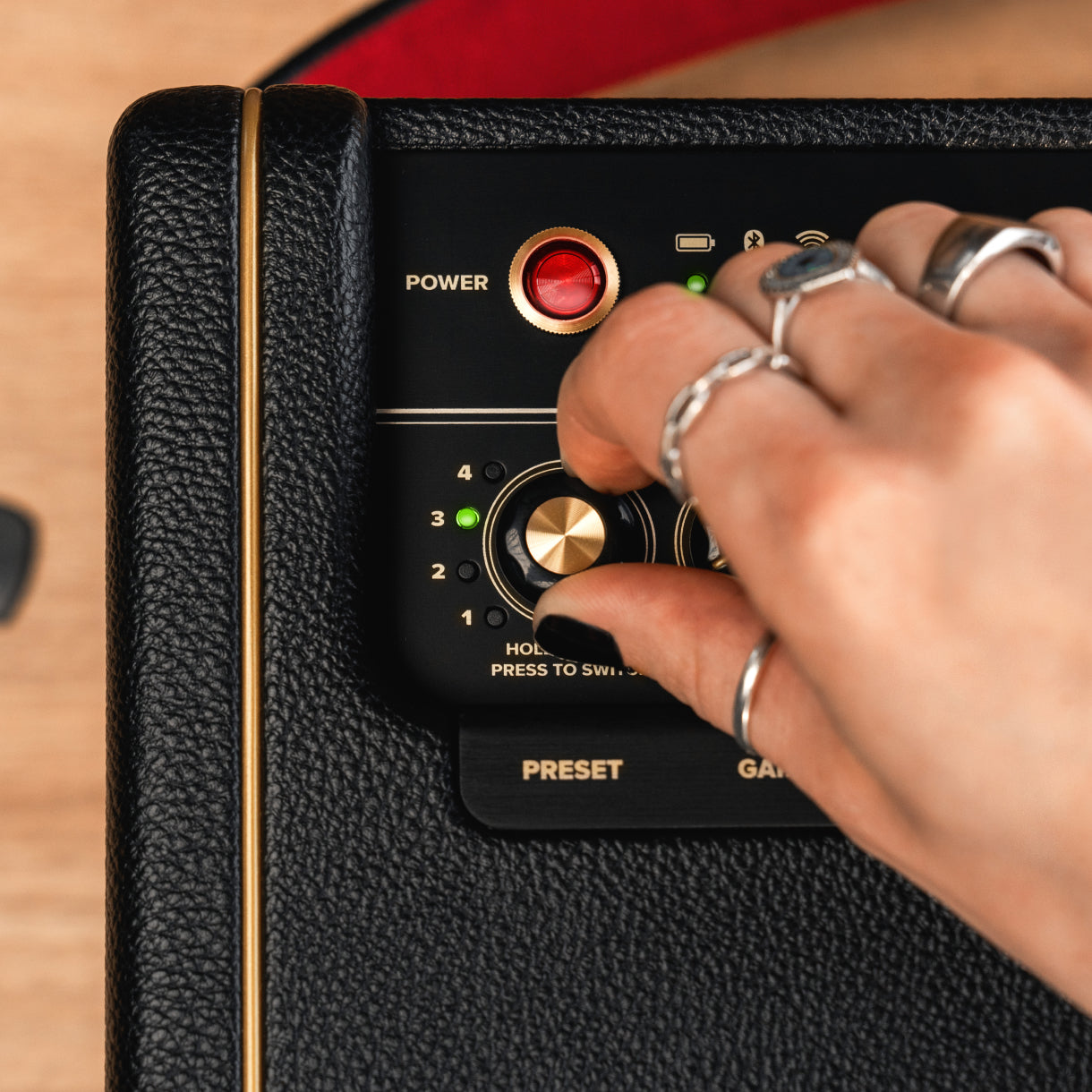 Craft your own presets in the Spark app, save them, and assign up to 8 them to the new dual-bank Preset Knob on Spark 2 for quick access.