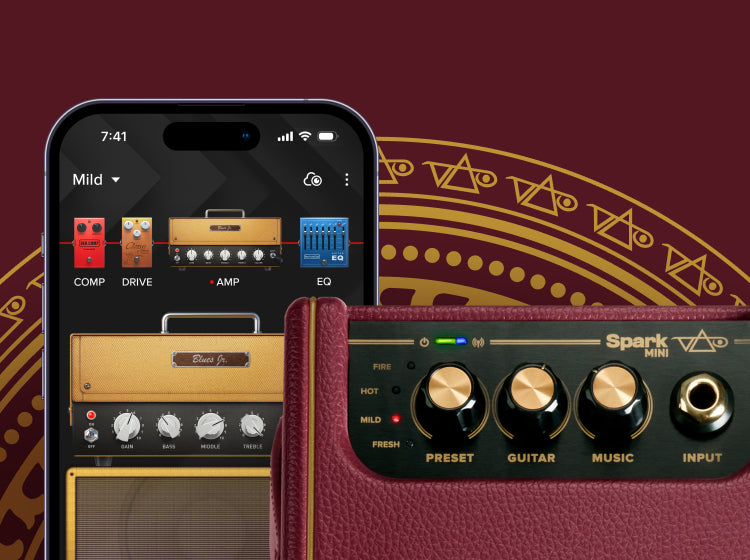 Spark MINI Vai is a special edition portable guitar amp, custom-designed by legendary guitar virtuoso and 3-time GRAMMY® award winner, Steve Vai. Complete with an exclusive burgundy weave cable and unique design elements, this amp fuses Steve’s signature tone and bold persona with the unmatched versatility of Spark MINI—perfectly crafted for wherever your music takes you.